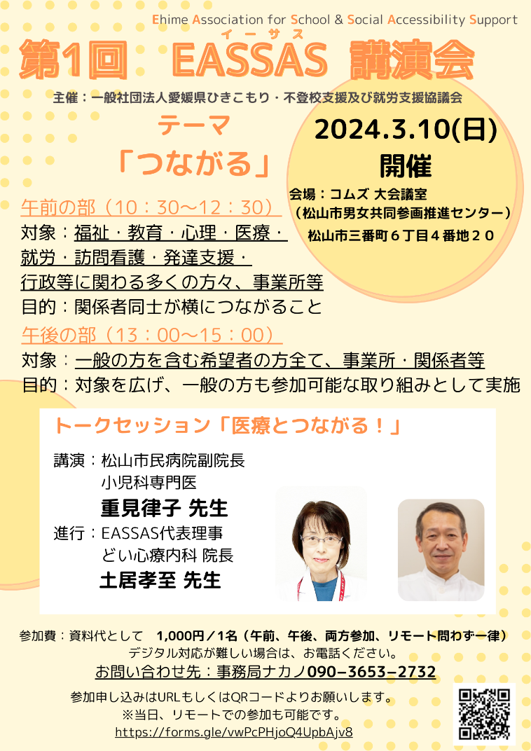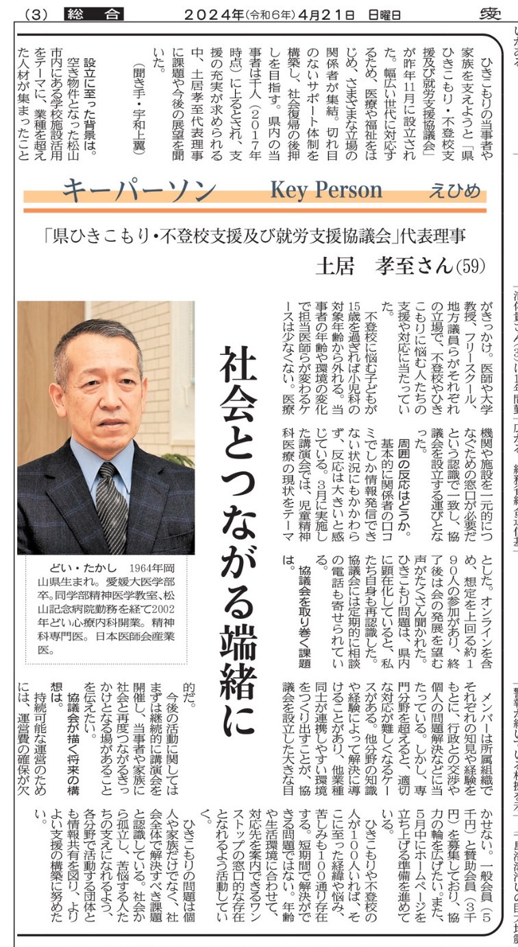 お知らせ 2024.03.292024.09.26 目次 イベントセミナーメディア情報 イベント 2024/3/10 第1回EASSAS講演会 テーマ:「つながる」 セミナー メディア情報 2024/3/11 愛媛新聞掲載 2024/4/21 愛媛新聞掲載